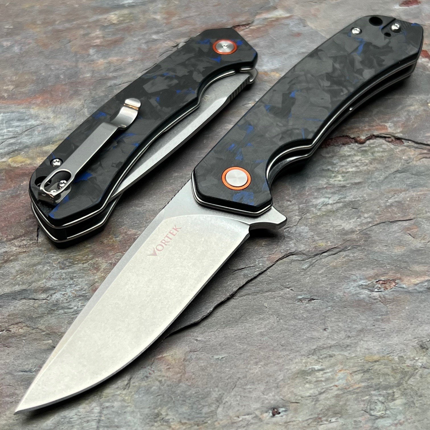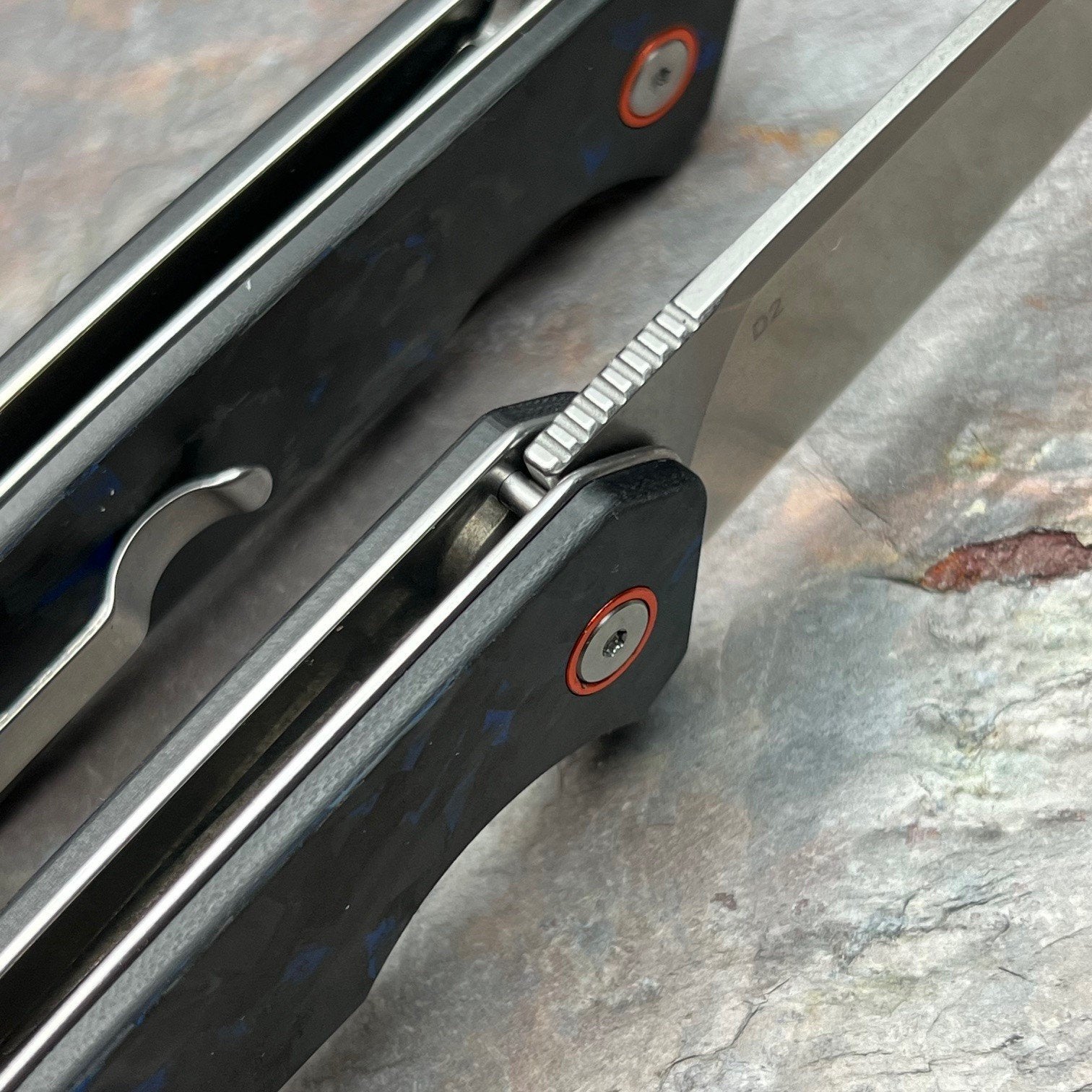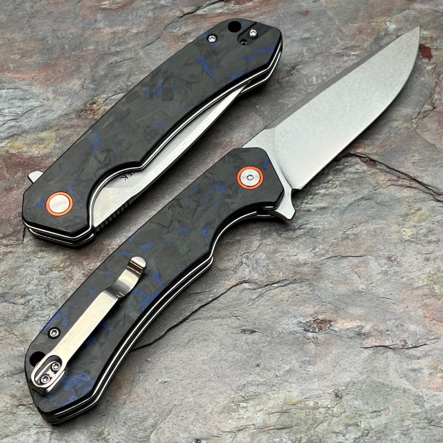 SPROUT - Black Blue Carbon Fiber Handles, D2 Drop Point Blade